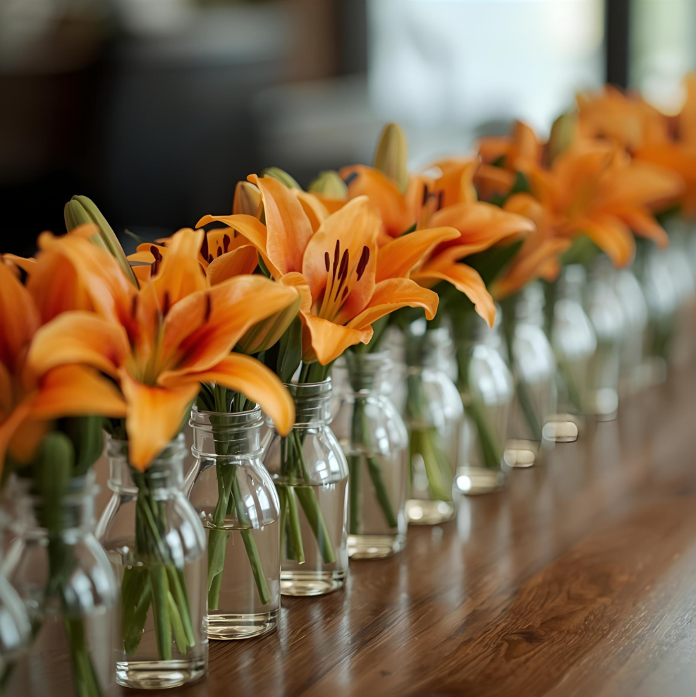Smaller vases, typically 2-3 stems, add polish and personality to every table — perfect for cocktail hours, elegant galas, and everything in between.